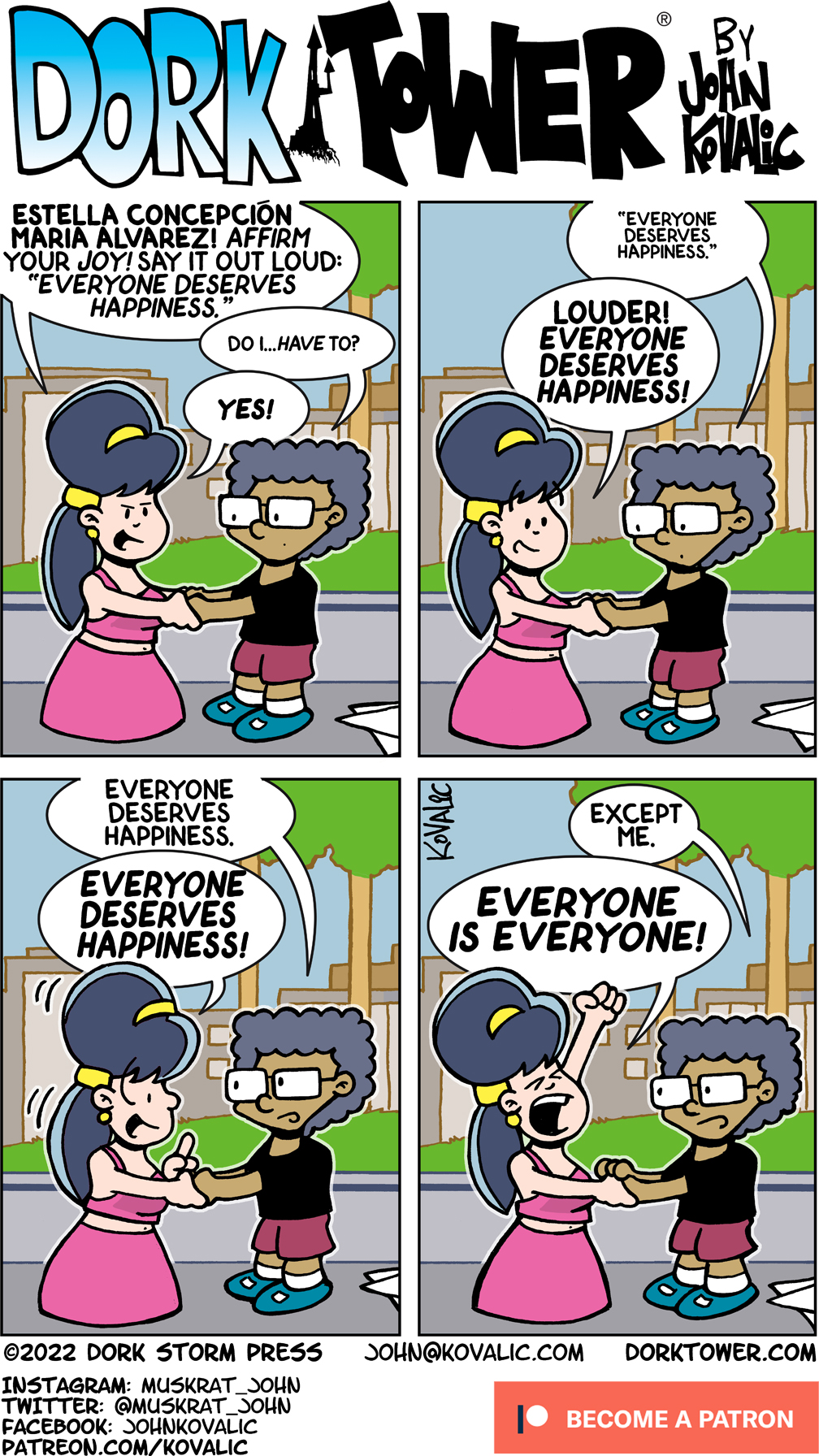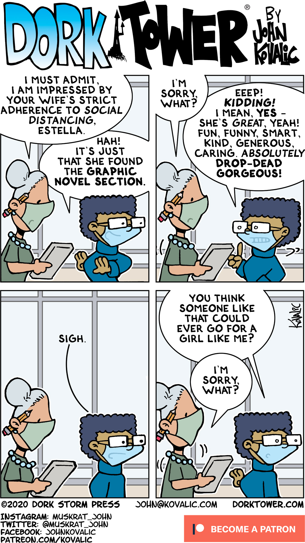 Dork Tower now Monday/Wednesday/Friday, thanks to reader support. The next goal is a large-format Sunday strip! Help us reach four Dork Towers a week! You’ll get swag, commentary, bonus strips, community…and our everlasting gratitude! Enlist in the the Army of Dorkness today!