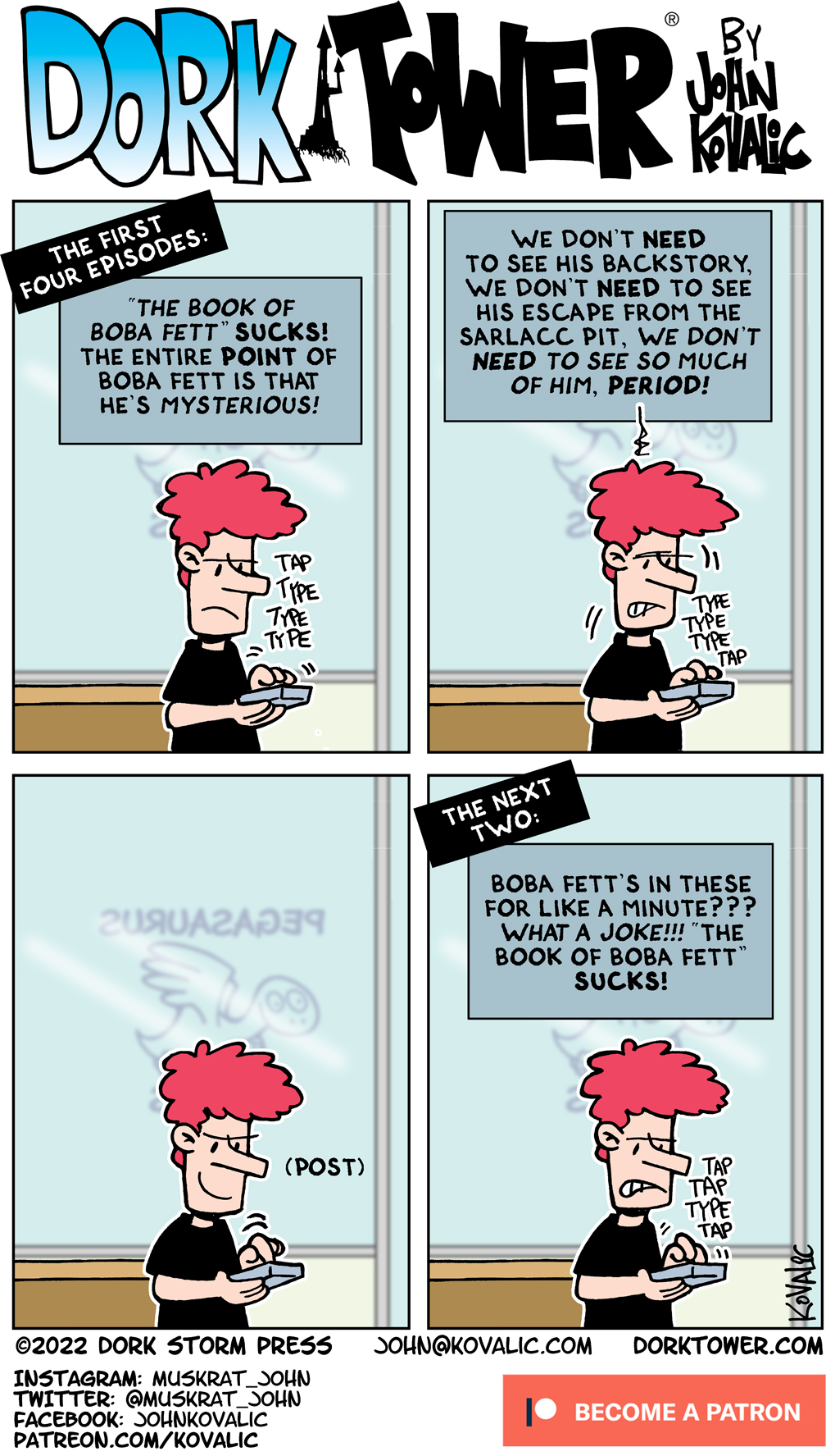 DORK TOWER is updated three times a week, thanks to its generous PATREON supporters! Enlist in the Army of Dorkness today, and help!