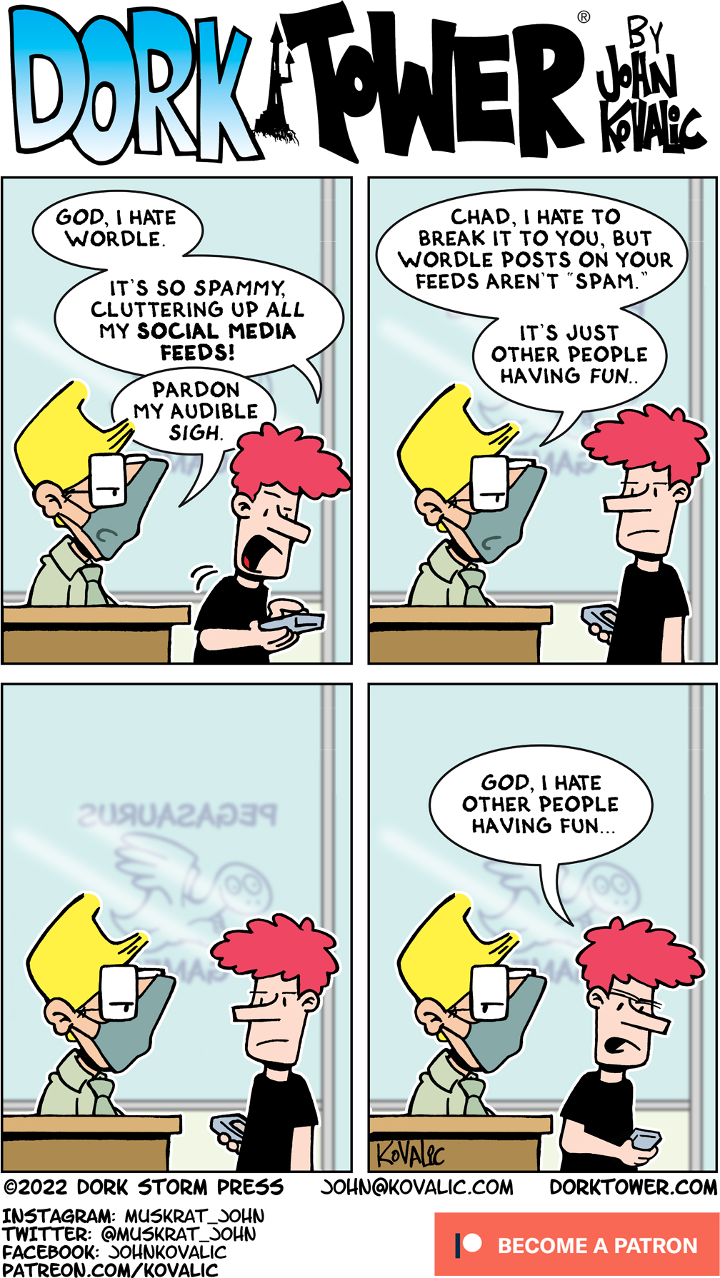 DORK TOWER is updated three times a week, thanks to its generous PATREON supporters! Enlist in the Army of Dorkness today, and help!