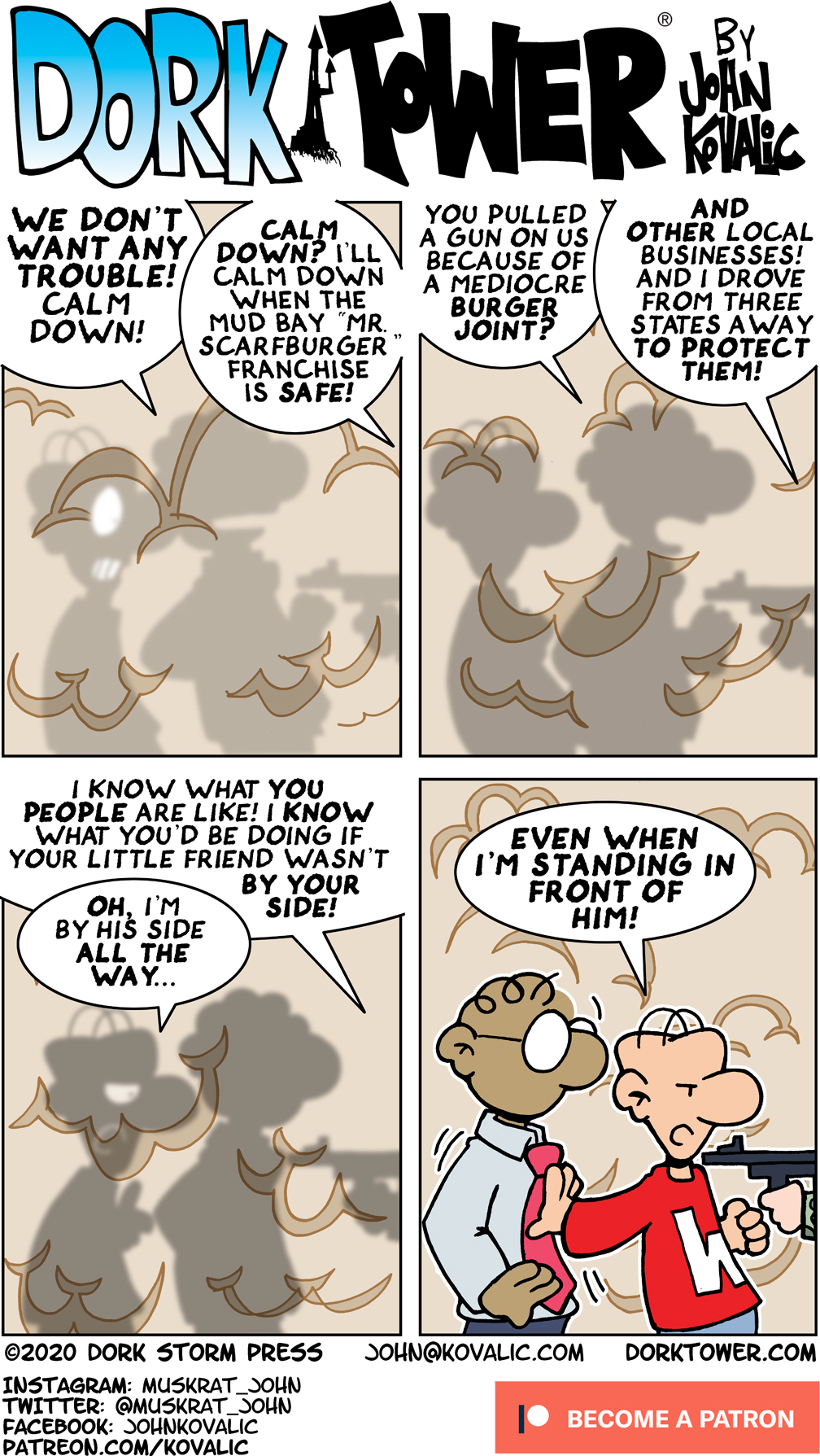 Dork Tower is updated Mondays, Wednesdays and Fridays, thanks to its amazing Patreon supporters. Enlist in the the Army of Dorkness today, and help bring more Dork Tower to the world (and get swag, my eternal gratitude, and more)! Even a $1 pledge helps!