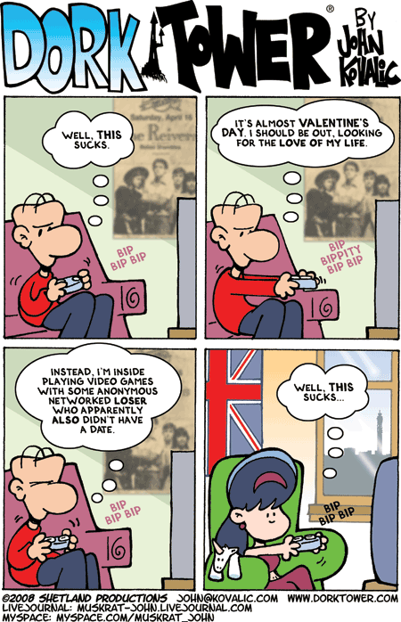 Someone wrote in to let me know that the link to the first strip is broken, and the archives on DorkTower.com are, and I quote, “crap.”