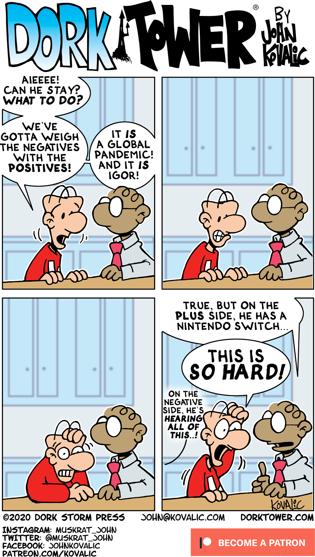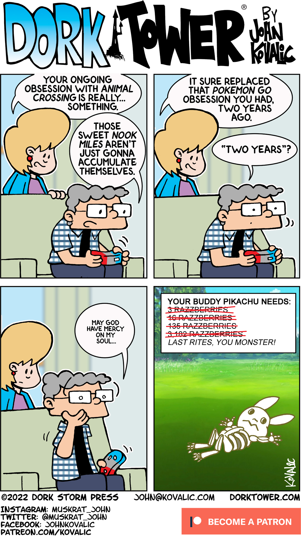 Dork Tower is 100% reader supported. Join the Army of Dorkness today, and help bring more Dork Tower to the world! By becoming a Dork Tower Patreon backer, you get our everlasting gratitude (and also swag, commentary, bonus strips, and even more swag), but, critically, you’ll help us reach our next goal – three comics a week! HINT: we are VERY close!