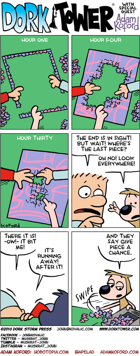Dork Tower – and its GUEST ARTISTS – is made possible by its amazing Patreon backers. There’s bonus content, swag, and more! The goal for 2019 is to reach three comics up a week, and we’re SO CLOSE! JOIN THE ARMY OF DORKNESS and help us get there!