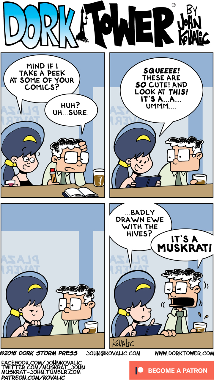 We’re back to posting TWO new Dork Tower comic strips a week, thanks to our wonderful Patreon patrons! Join the fun and see the comics early, plus a lot, lot more, for as little as $1 a month ($.12 a comic!)