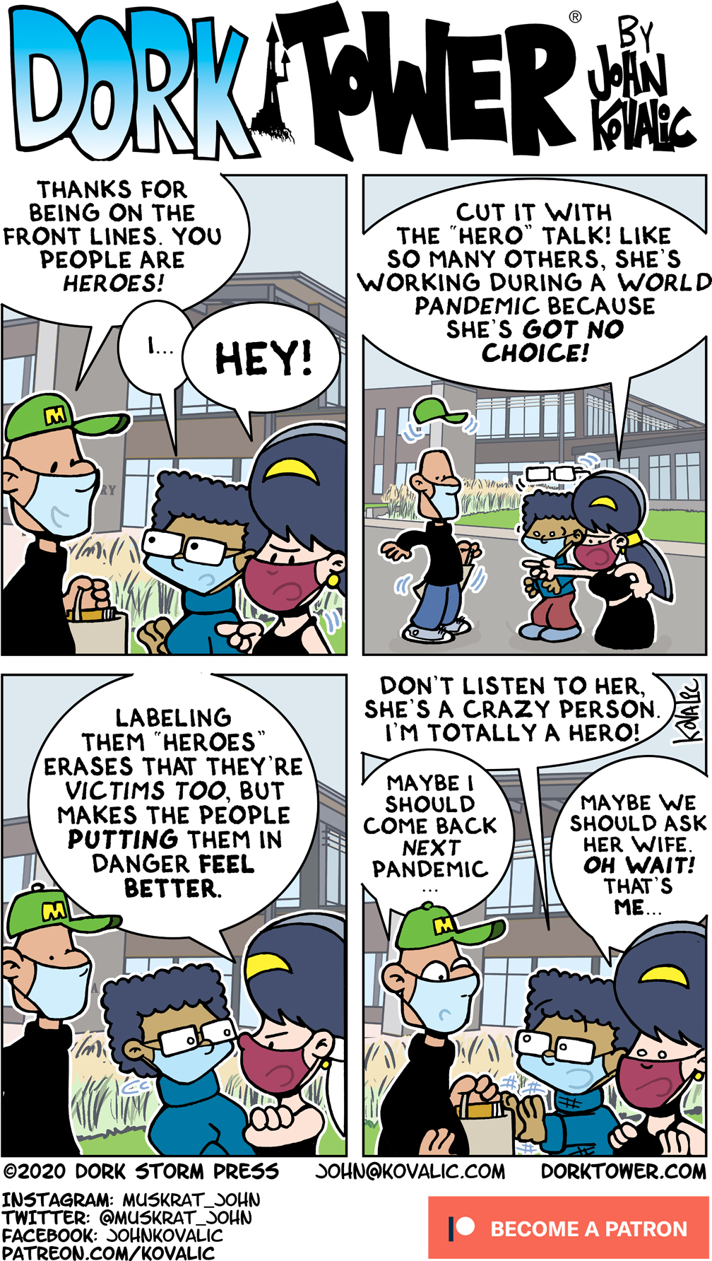 Dork Tower runs Monday/Wednesday/Friday, thanks to the support of its amazing Patreon backers. The next goal is a Sunday strip! Help us reach four Dork Towers a week! You’ll get swag, commentary, bonus strips, community…and our everlasting gratitude! Enlist in the the Army of Dorkness today!