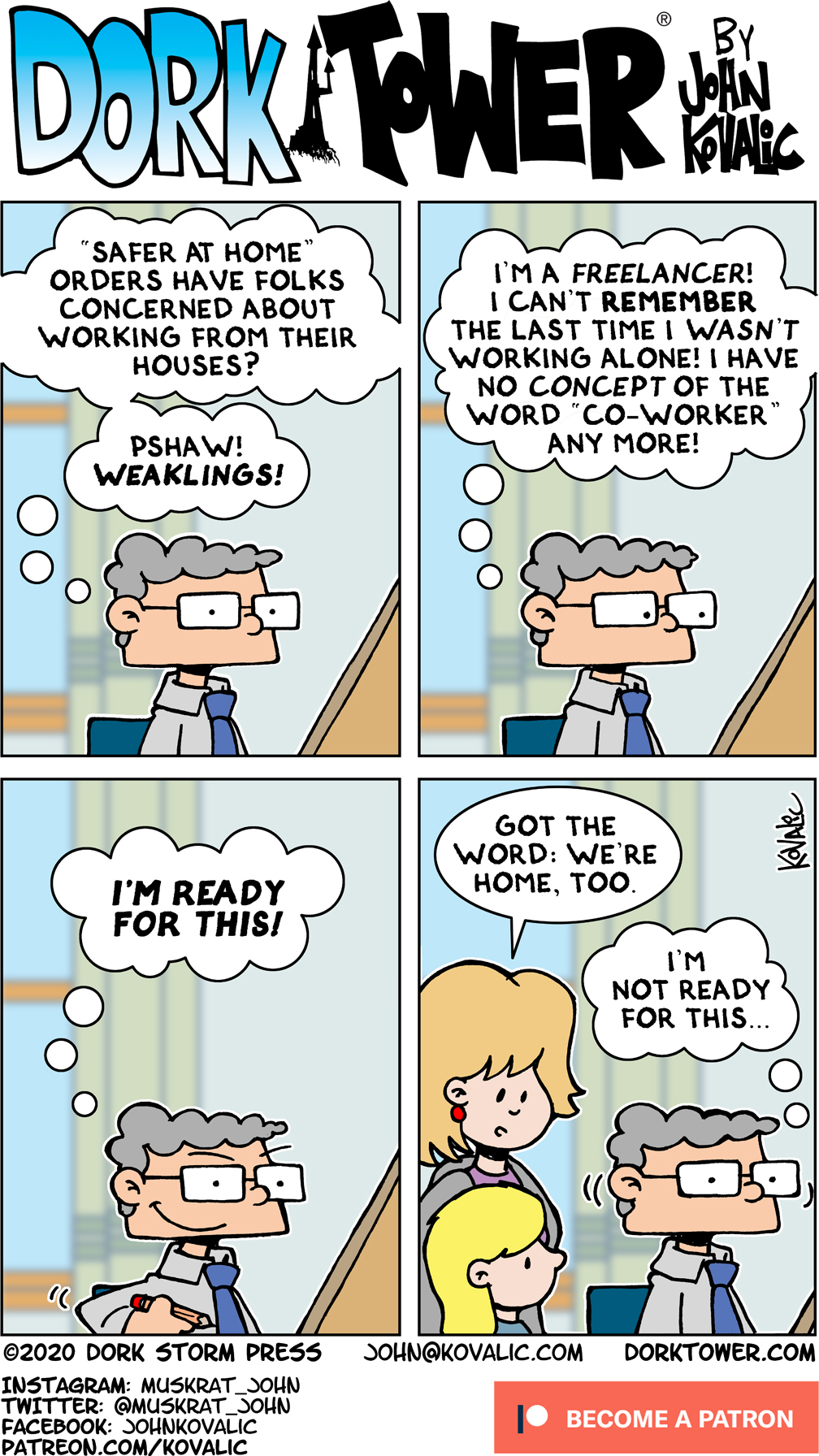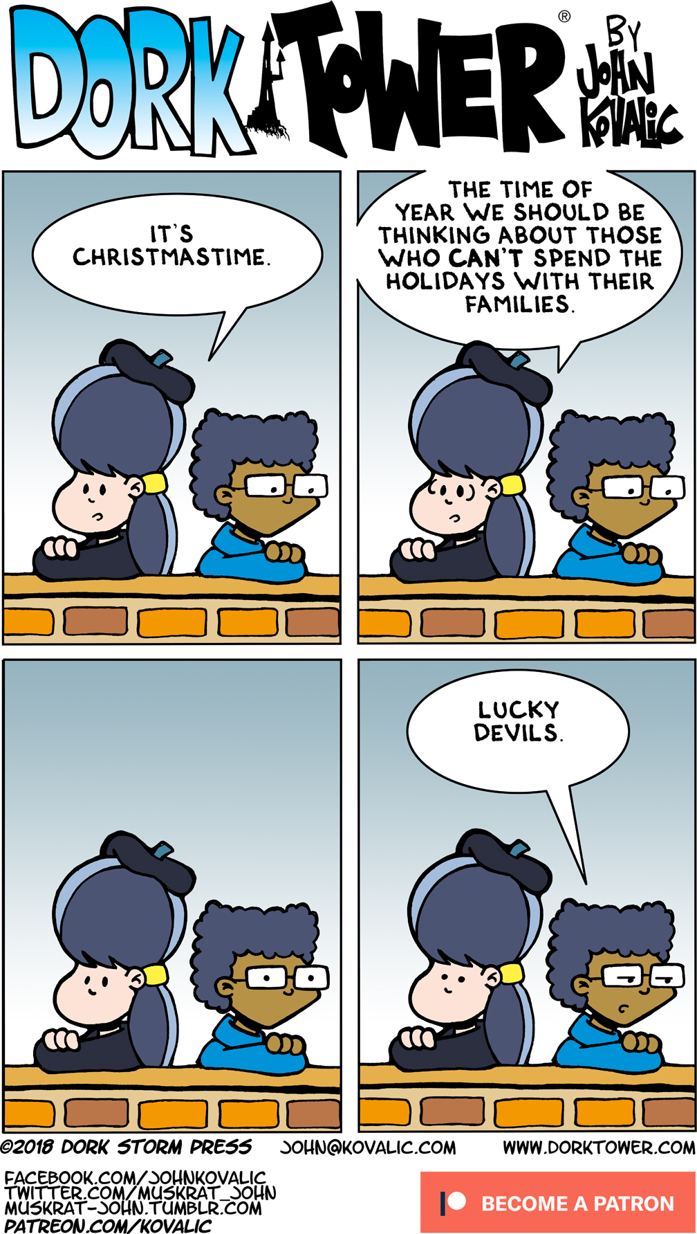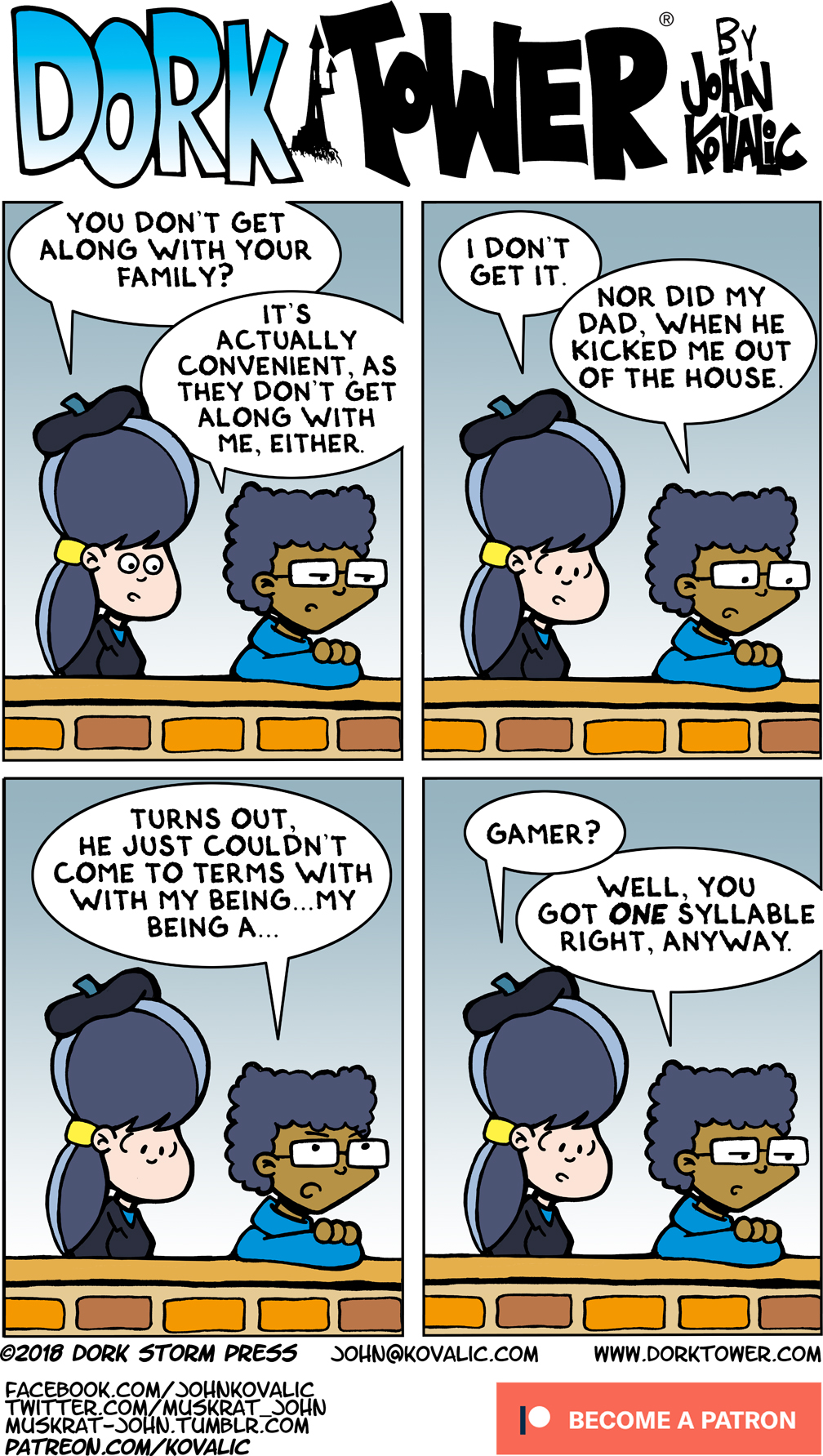 Become a DORK TOWER Patreon! Dork Tower is 100% reader-funded, and updated Mondays, Wednesdays and Fridays, thanks its generous Patreon supporters. The next goal is four strips a week! Enlist in the Army of Dorkness today, and help us reach that! We have a ton of fun! Also: swag!