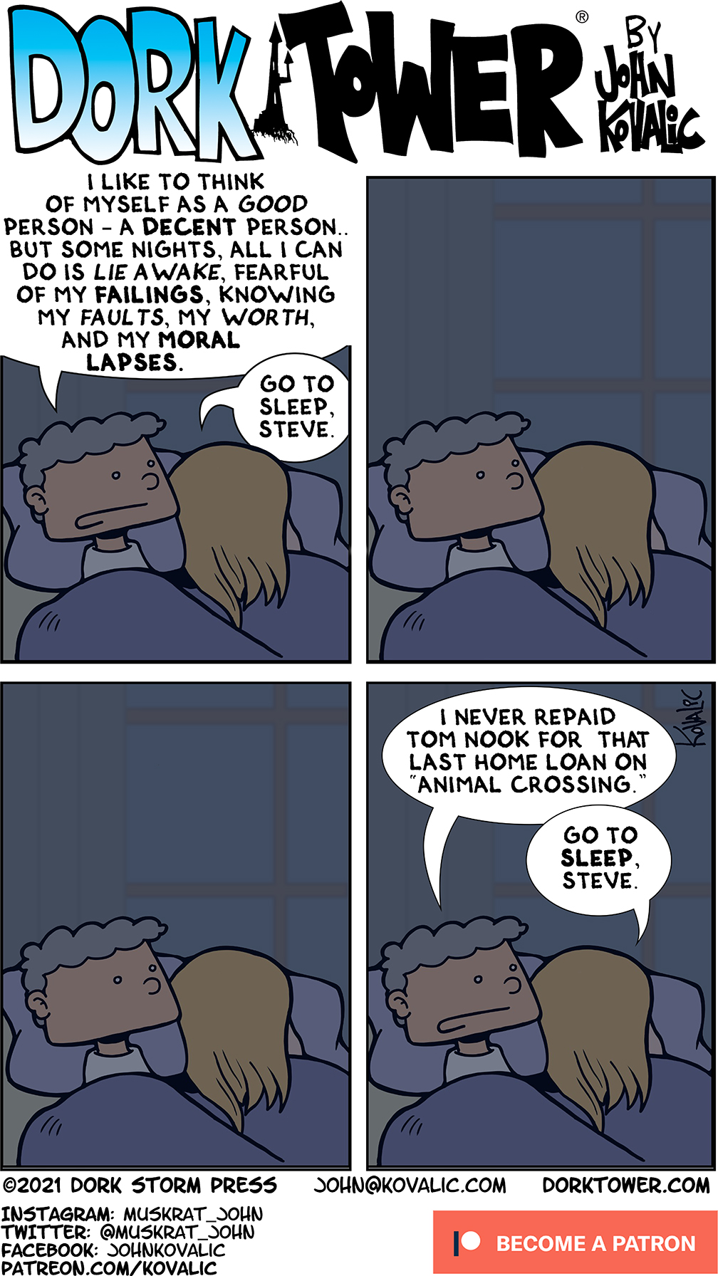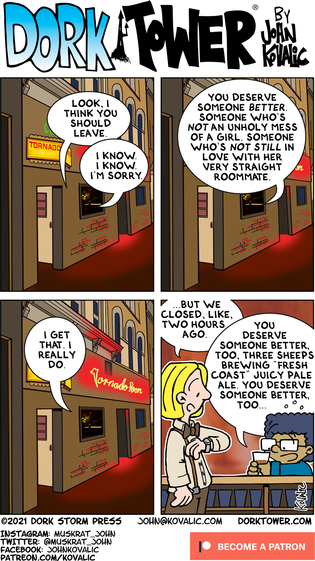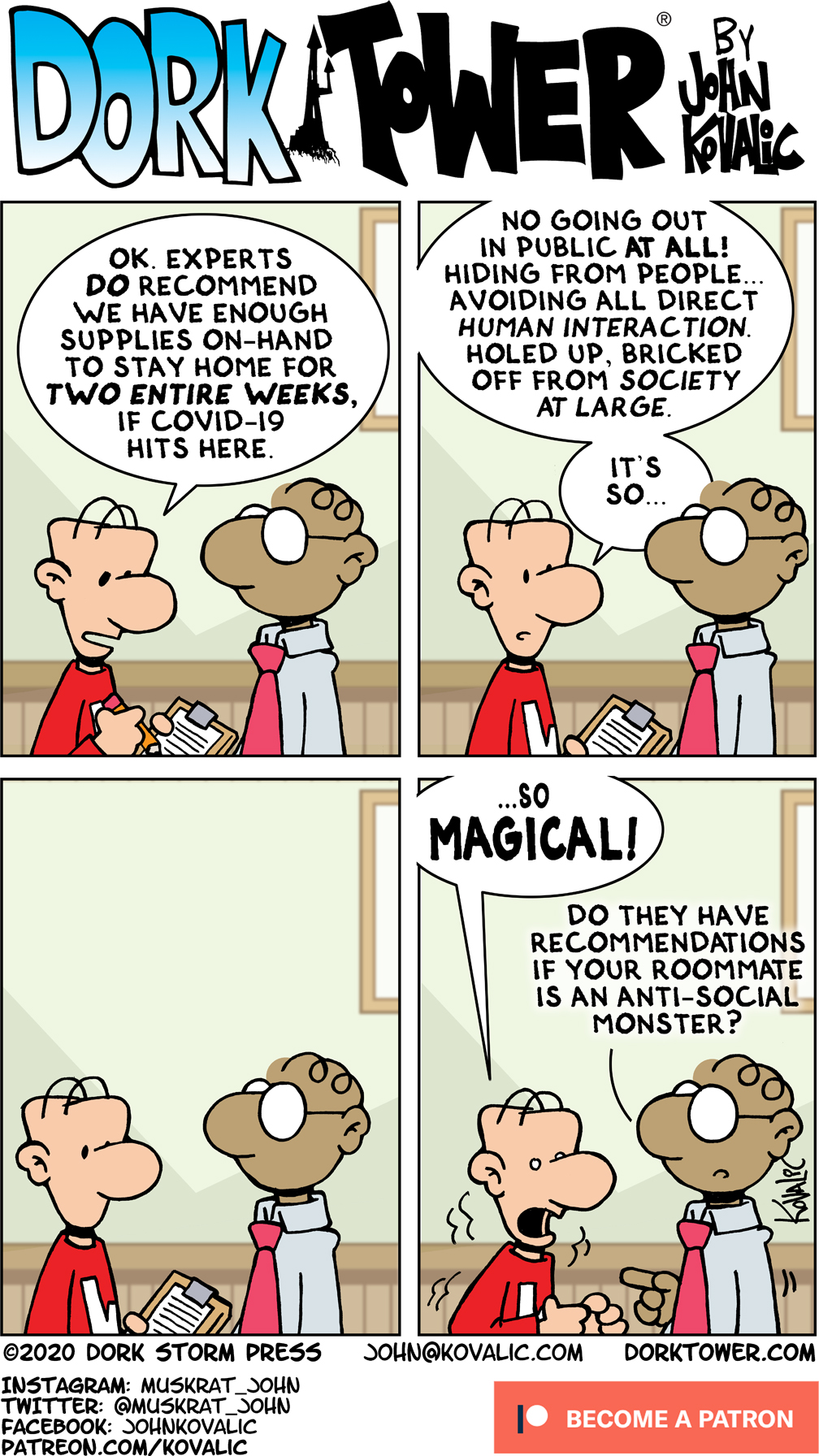 Become a DORK TOWER Patreon! Dork Tower is 100% reader-funded, and updated Mondays, Wednesdays and Fridays, thanks its generous Patreon supporters. The next goal is four strips a week! Enlist in the Army of Dorkness today, and help us reach that! We have a ton of fun! Also: swag!
