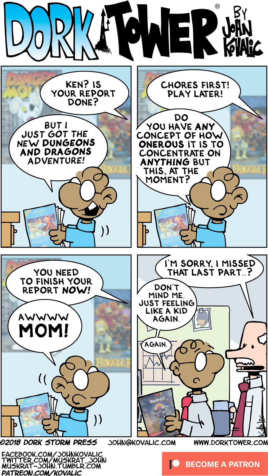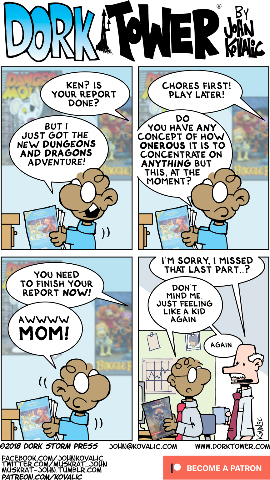 Someone wrote in to let me know that the link to the first strip is broken, and the archives on DorkTower.com are, and I quote, “crap.”