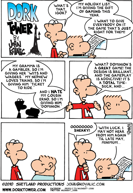 During December, 2010, Dork Tower is switching to a Tuesday-Thursday updates, due to the holidays, and that I’ve an extremely cute two-year old daughter WHO MUST BE TAUGHT THE VALUE OF “A CHARLIE BROWN CHRISTMAS.”