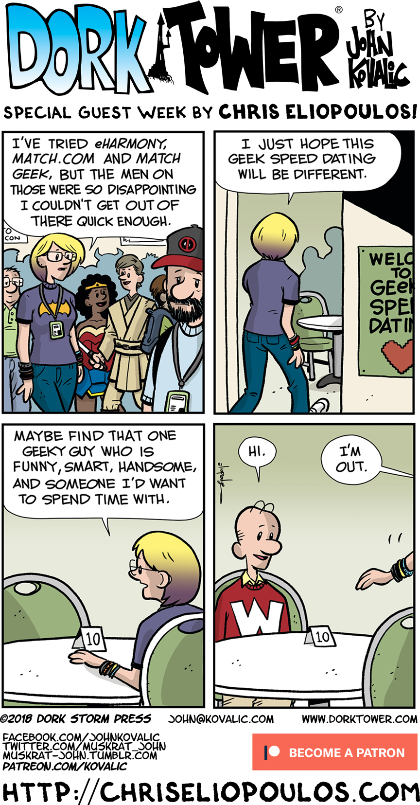 We’re back to posting TWO new Dork Tower comic strips a week, thanks to our wonderful Patreon patrons! Join the fun and see the comics early, plus a lot, lot more, for as little as $1 a month ($.12 a comic!)