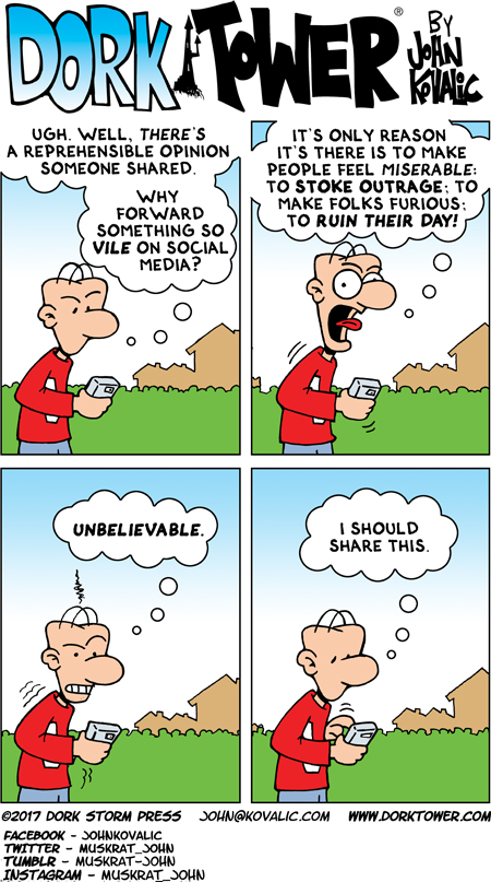Dork Tower is updated Tuesdays and Thursdays. For as little as $1 a month, you can join the Army of Dorkness – and help bring more Dork Tower to the world! We’re 80% of the way towards three comics a week! Become a Dork Tower Patreon backer – you get everlasting gratitude (and also swag, commentary, and bonus comics!)