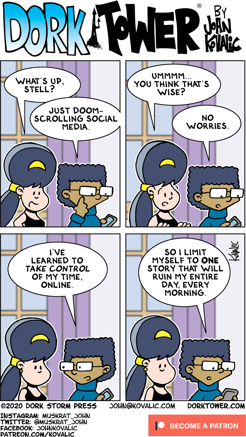 Dork Tower is 100% reader supported. Join the Army of Dorkness today, and help bring more Dork Tower to the world! By becoming a Dork Tower Patreon backer, you get our everlasting gratitude (and also swag, commentary, bonus strips, and more swag), but, critically, you’ll help us reach our next goal – three comics a week! WE ARE SO CLOSE TO GETTING THREE STRIPS A WEEK!