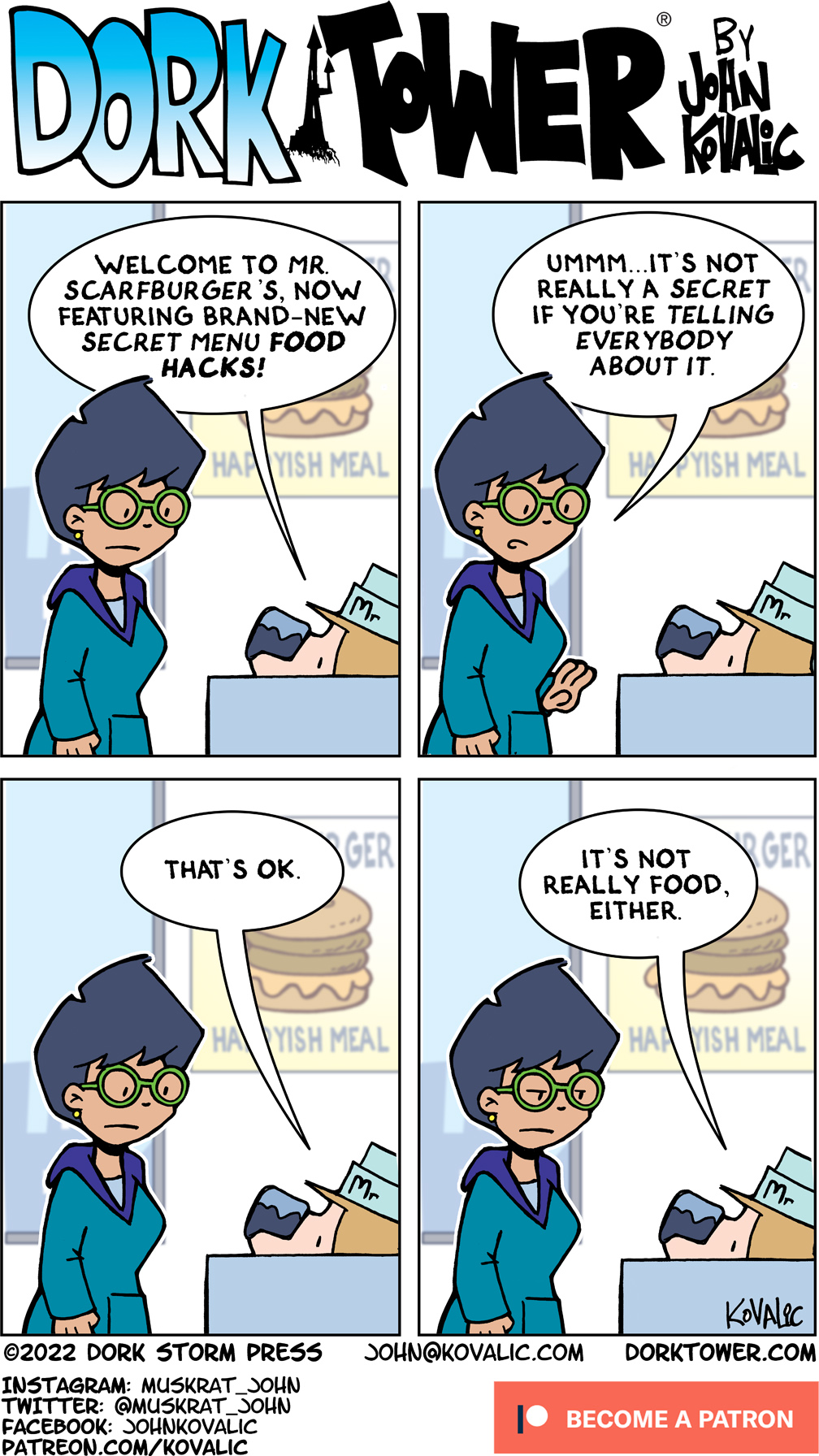Dork Tower is updated Tuesdays and Thursdays. Join the Army of Dorkness – and help bring more Dork Tower to the world! Become a Dork Tower Patreon backer – you get everlasting gratitude (and also swag, commentary, and bonus comics!)
