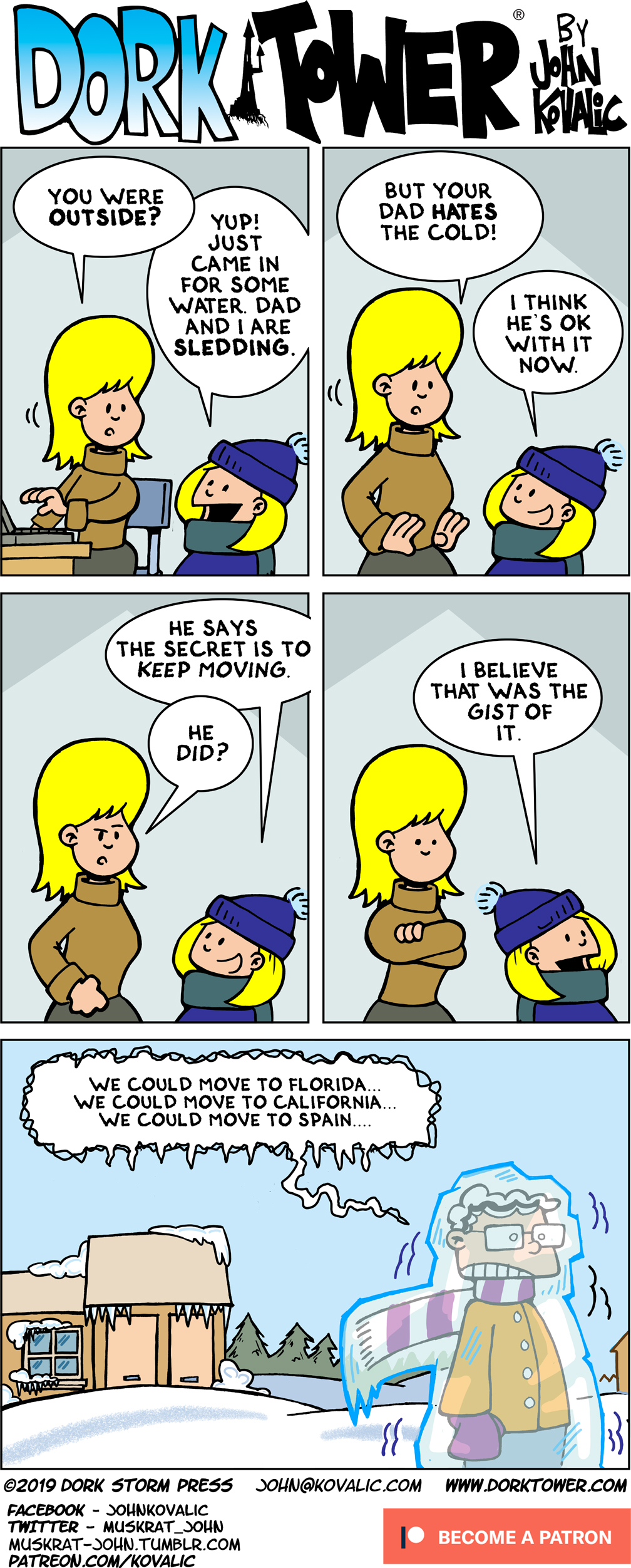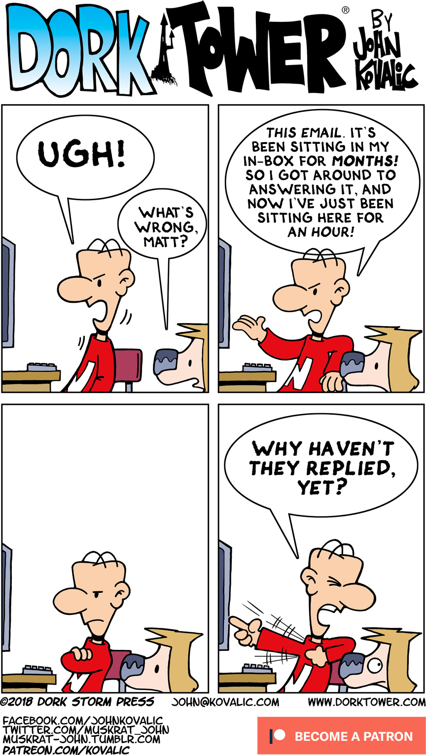 Dork Tower has a Patreon campaign, with amazing backers who make these webstrips possible. And there’s bonus content, swag, and more! We’re close to the goal of three comics a week. SO CLOSE! JOIN THE ARMY OF DORKNESS!