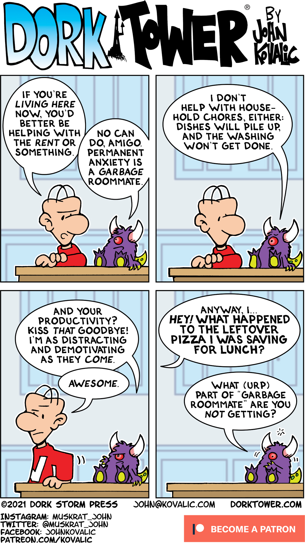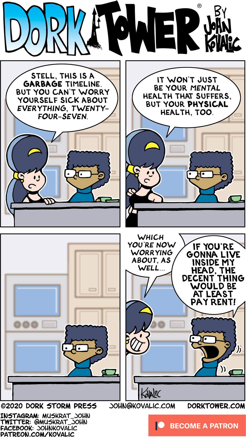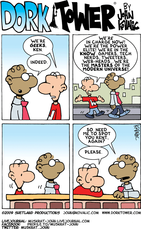 No, I’m not entirely sure why I chose to throw a Radiohead reference into a strip. I do enjoy the band – often, a great deal. I fully believe “The Bends”/”OK Computer”/”Kid A” form a back-to-back-to-back release trilogy of a brilliance that rivals Elvis Costello’s “This Year’s Model”/”Armed Forces”/”Get Happy” or the Beatles’…well, pretty much any thre Beatles albums in a row, honestly.