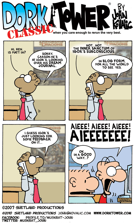 Want this or any DORK TOWER strip as a signed, hight-quality print? Now available! LOOKIE HERE!