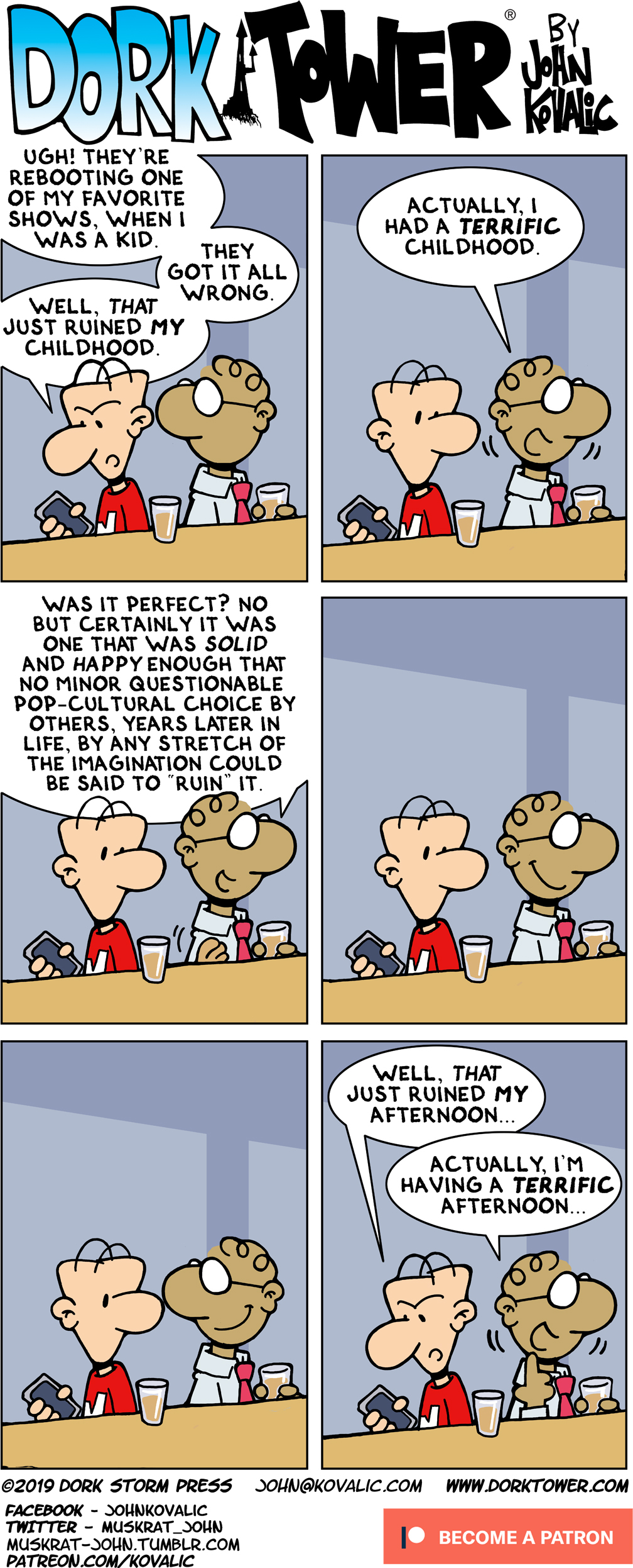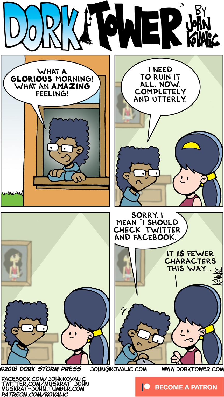 Dork Tower is updated Tuesdays and Thursdays. For as little as $1 a month, you can join the Army of Dorkness – and help bring more Dork Tower to the world! We’re nearly 80% of the way towards three comics a week! Become a Dork Tower Patreon backer – you get everlasting gratitude. Oh, wait – and also swag!