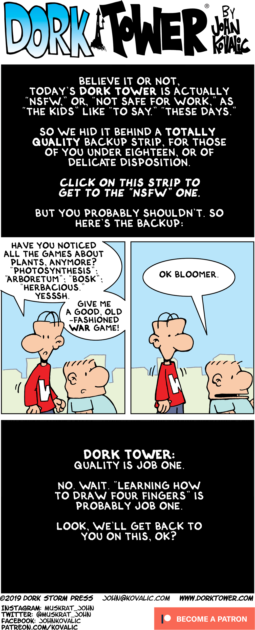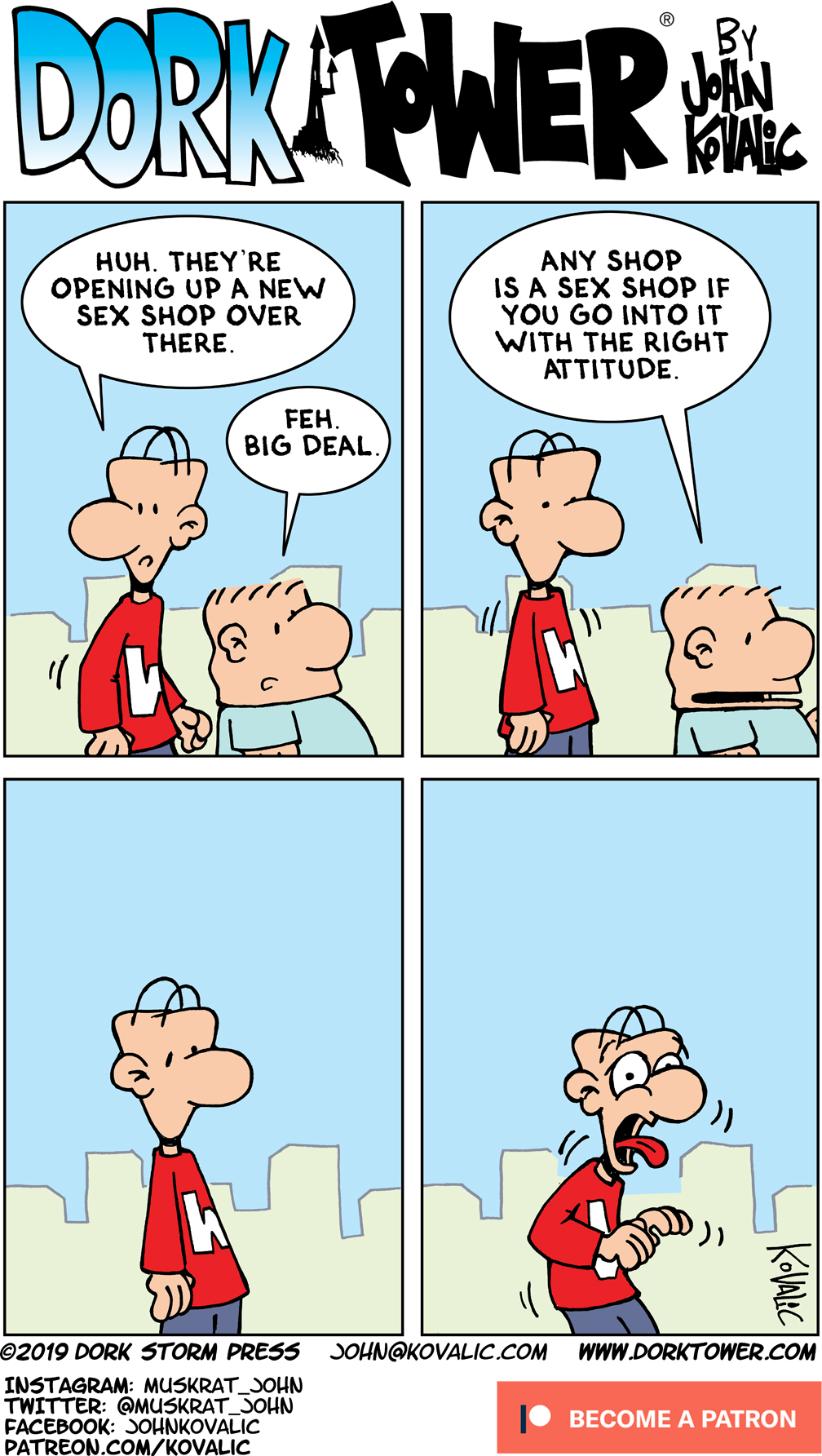 Dork Tower is 100% reader supported. Join the Army of Dorkness today, and help bring more Dork Tower to the world! By becoming a Dork Tower Patreon backer, you get John’s everlasting gratitude (and also swag, commentary, bonus strips, and more swag), but, critically, you’ll help us reach our next goal – three comics a week!