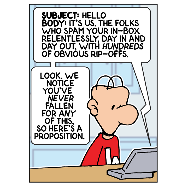 I used to think Spammers – like most folks – at least took a modicum of professional pride in their work. They, too, now, are just phoning it in. The end is near, people. The end is near. FROM: Billy D. Rogers SUBJECT: Billy Offer!! Via F. Turati 22, 00186 Rome, Italy. Dear Sir/Madam, My. […]