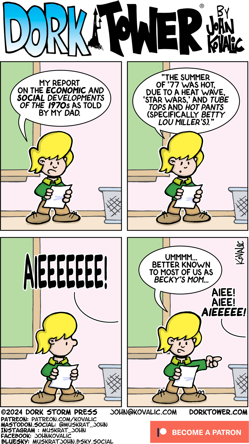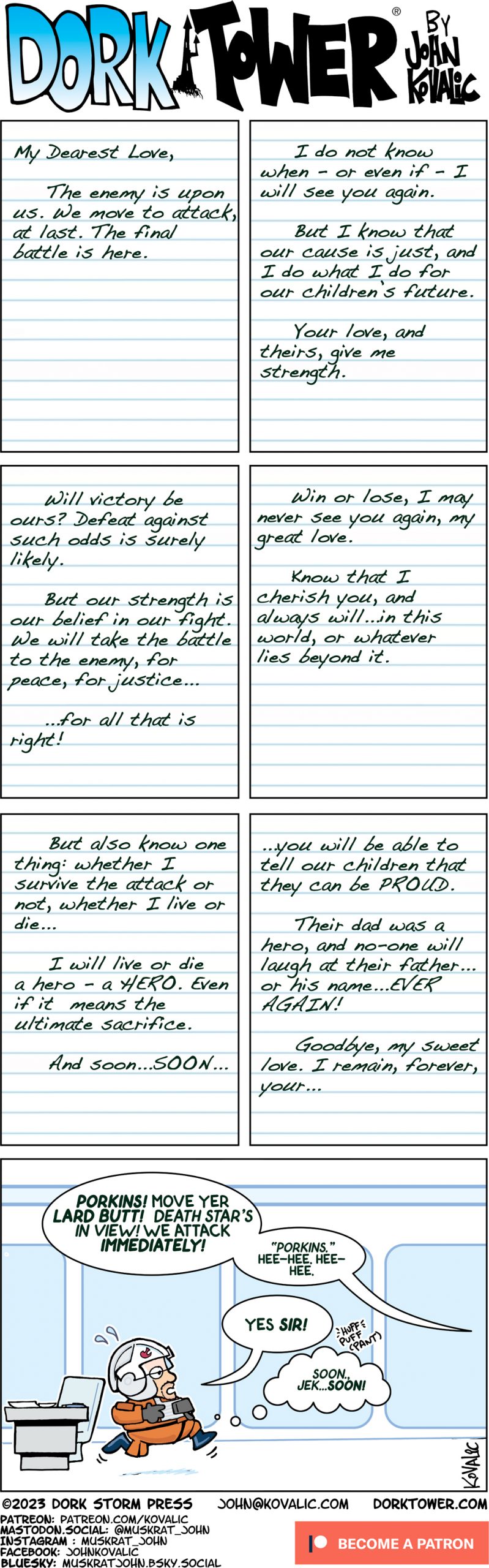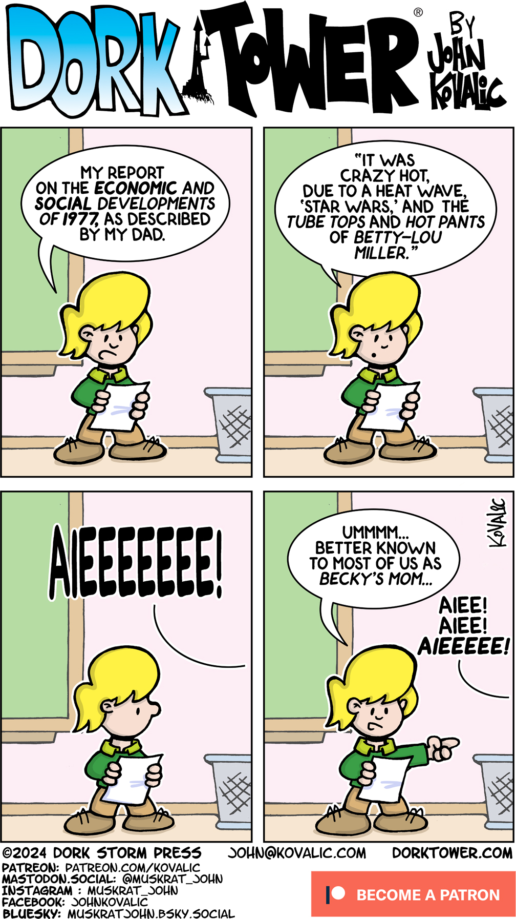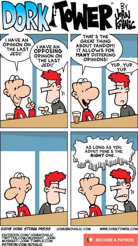 Dork Tower is 100% reader supported. Join the Army of Dorkness today, and help bring more Dork Tower to the world! By becoming a Dork Tower Patreon backer, you get John’s everlasting gratitude (and also swag, commentary, bonus strips, and more swag), but, critically, you’ll help us reach our next goal – three comics a week!