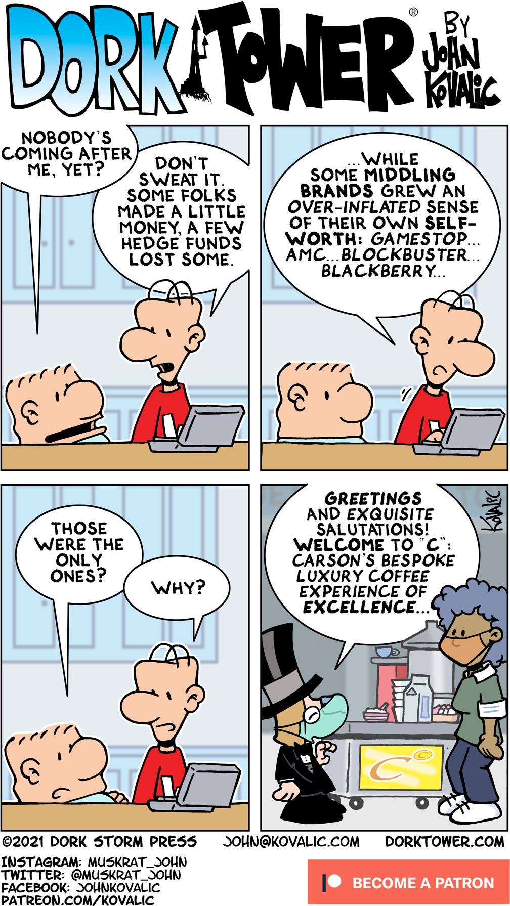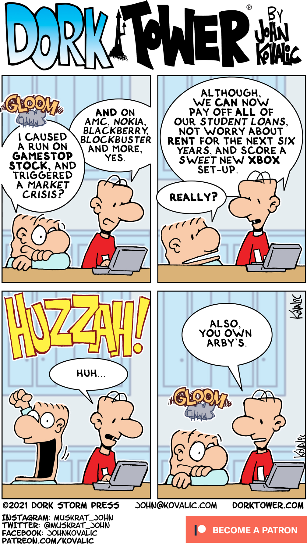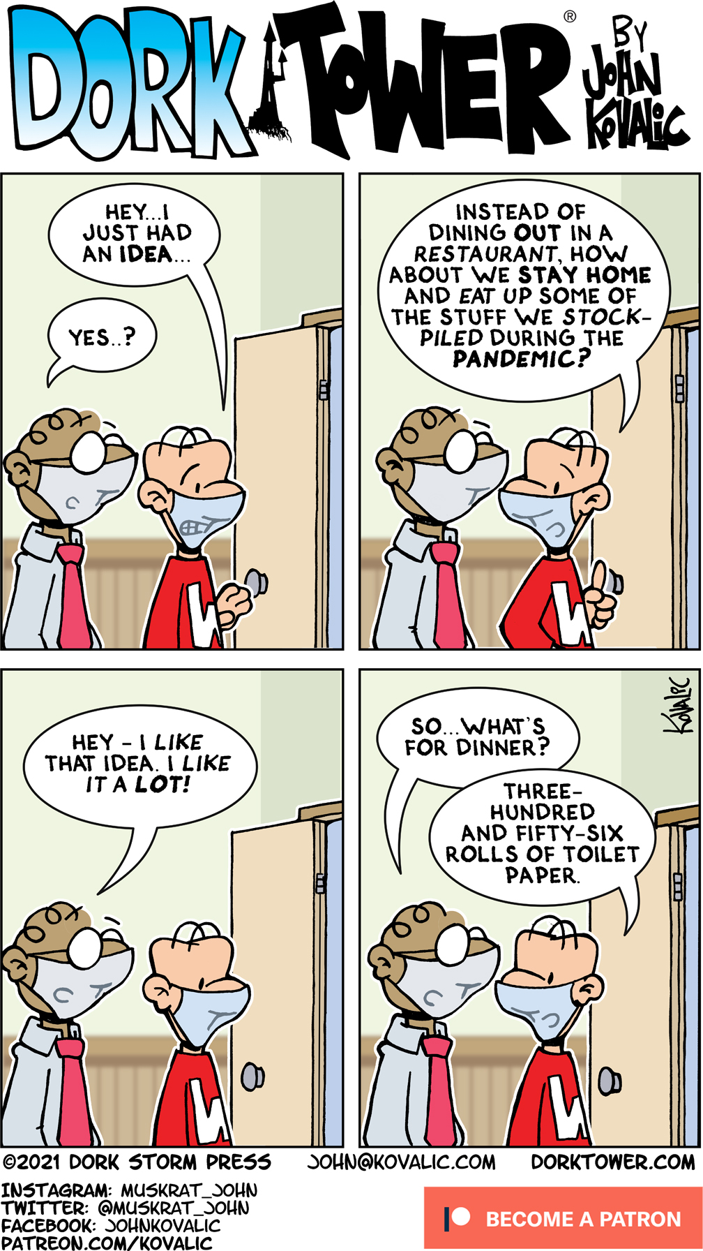 There’s a DORK TOWER Patreon! Dork Tower is 100% reader-funded, and updated Mondays, Wednesdays and Fridays, thanks its generous Patreon supporters. The next goal is four strips a week! Enlist in the Army of Dorkness today, and help us reach that! We have a ton of fun! Also: Igor Bars!