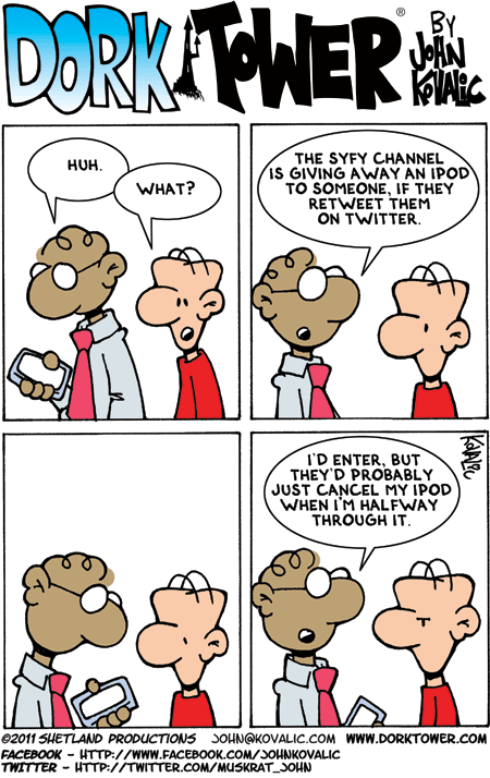 Someone wrote in to let me know that the link to the first strip is broken, and the archives on DorkTower.com are, and I quote, “crap.”