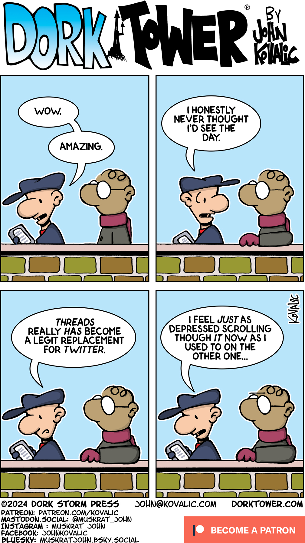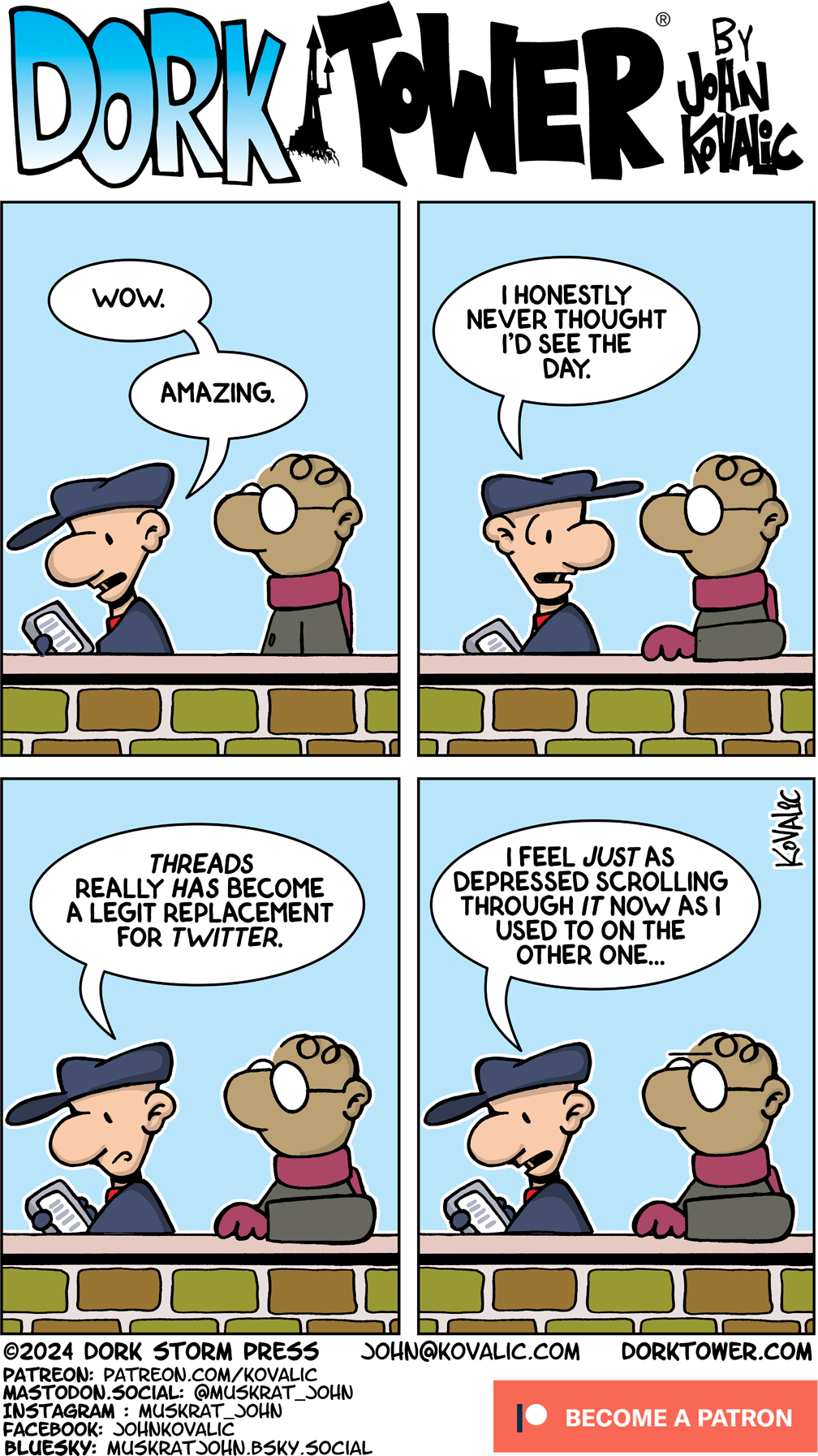 DORK TOWER is updated three times a week, thanks to its generous PATREON supporters! Enlist in the Army of Dorkness today, and help!