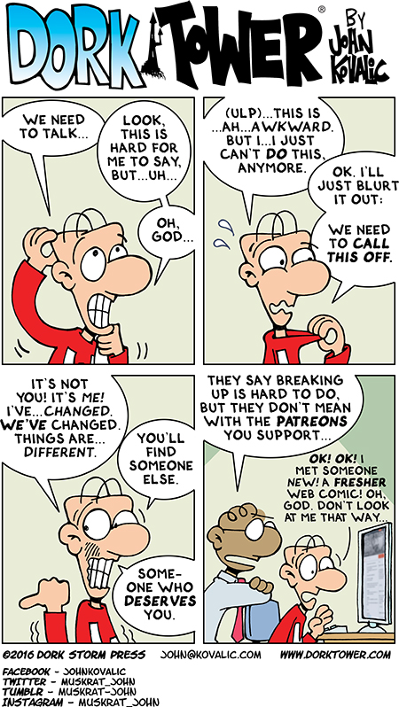 Dork Tower is 100% reader supported. Join the Army of Dorkness today, and help bring more Dork Tower to the world! By becoming a Dork Tower Patreon backer, you get John’s everlasting gratitude (and also swag, commentary, bonus strips, and more swag), but, critically, you’ll help us reach our next goal – three comics a week!