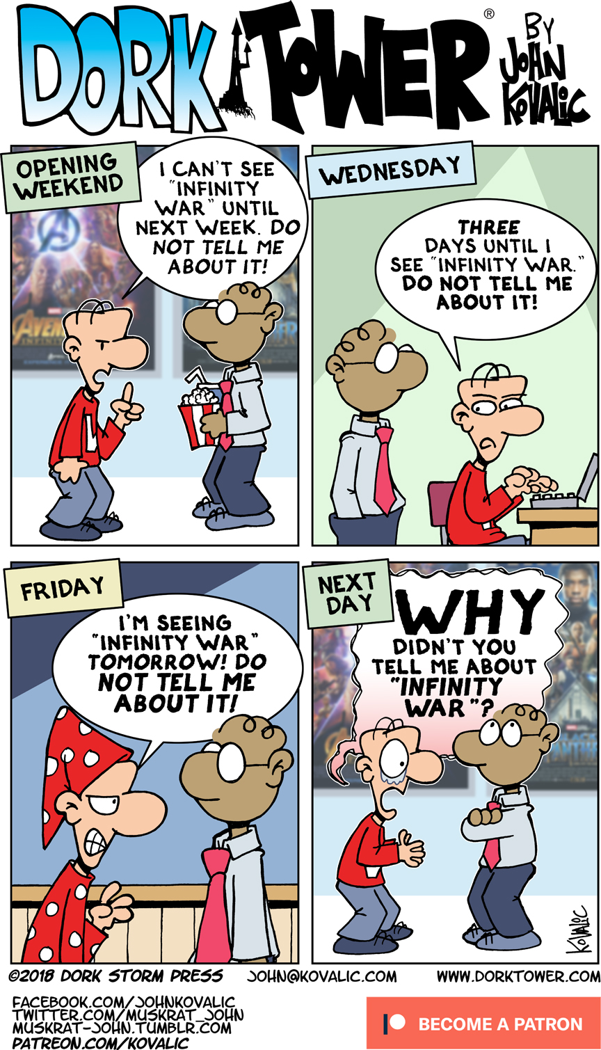 HEY THERE! Dork Tower has a Patreon campaign, with amazing backers who help these webstrips happen. We’re trying to reach three new comics every week! Please check it out, and help us hit that goal, if you can!