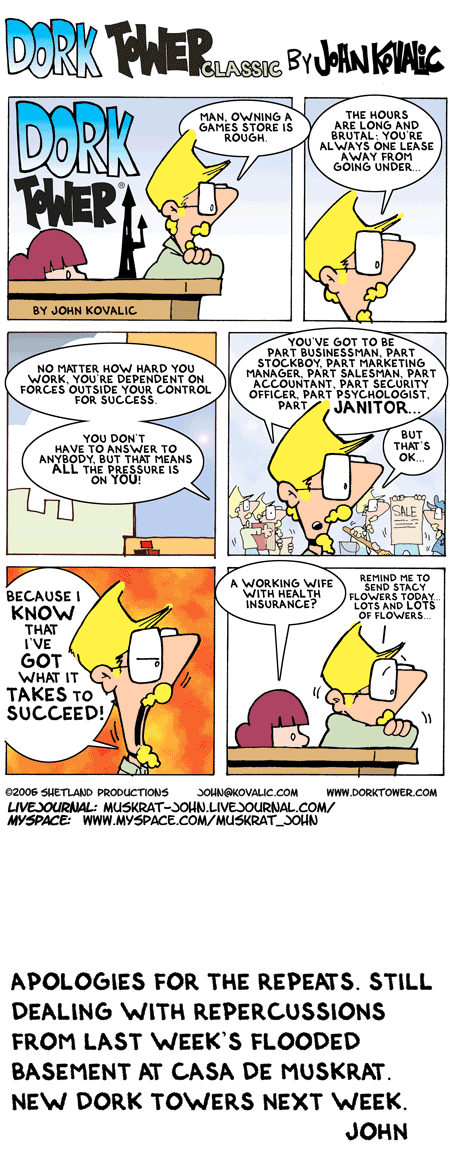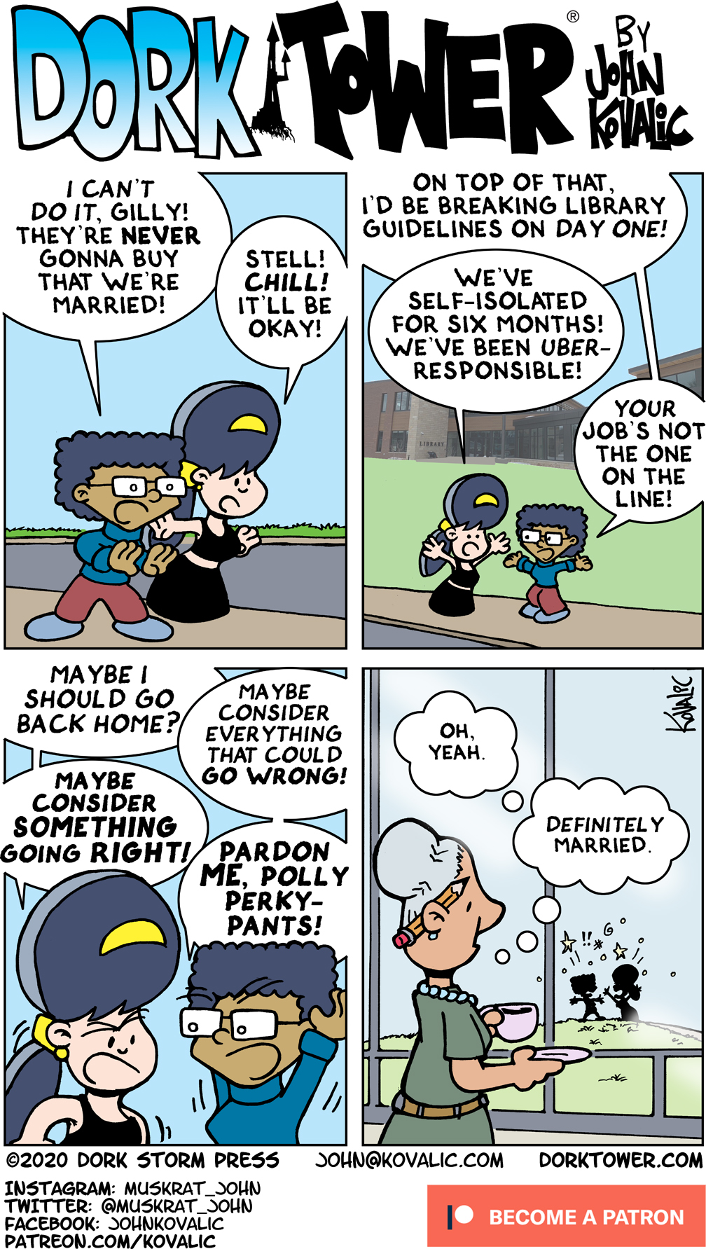 Become a DORK TOWER Patreon! Dork Tower is 100% reader-funded, and updated Mondays, Wednesdays and Fridays, thanks its generous Patreon supporters. The next goal is four strips a week! Enlist in the Army of Dorkness today, and help us reach that! We have a ton of fun! Also: swag!